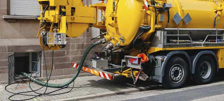 من خلال استخدام شاحنات الشفط القوية التي تزيل النفايات المتراكمة بكفاءة عالية.